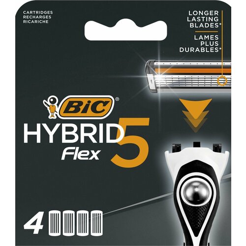 Сменные кассеты для бритья 5 лезвий BIC Hybrid 5 Flex сменные лезвия для мужской бритвы набор из 4 шт.