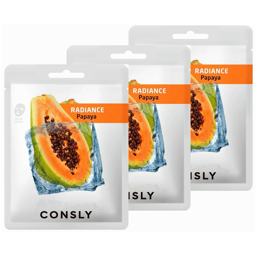 Consly Тканевая маска с экстрактом папайи выравнивающая тон кожи, 20 мл, 3 уп.