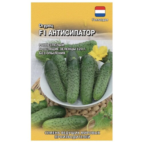 Семена Огурец Антисипатор F1, 5шт, Гавриш, Ведущие мировые производители Высокоурожайный, раннеспелый 3842 дня от массовых всходов до начала технической спелости), партенокарпический не требует опыления) гибрид для пленочных теплиц. Растение средневетвистое, женского типа цветения. Отлично завязывает плоды 12 шт. в каждой пазухе листа) и не сбрасывает завязь в условиях жаркого лета. Зеленец короткий, темнозеленый с короткими полосами, цилиндрической формы, среднебугорчатый, белошипый, длиной 1012 см, массой 113 г, без горечи. Хрустящие огурчики идеальны для салатов и консервирования. Посев на рассаду в начале мая. Высадка рассады в конце маяначале июня в фазе 23х настоящих листьев. Посев в грунт в конце маяначале июня. Теги: не перерастают, великолепны в засолке, без пустот и без горечи, сочные, хрустящие, невероятно сладкие. Купить лучшие семена огурцов семена огурцов набор Сибирские семена семена овощи скороспелый самоопыляемые для теплиц для открытого грунта на рассаду семена огурцов корнишоны корнишоны семена семена корнишонов семена огурцов сибирской коллекции семена огурцов холодостойких Категория: Огурец, Огурцы салатные, Огурцы корнишоны, Огурцы F1, Огурцы для теплицы, Огурец партенокарпический, Серии семян