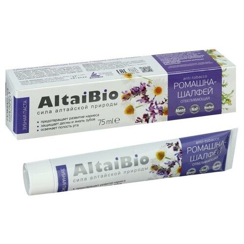 Зубная паста AltaiBio Ромашкашалфей Отбеливающая Антитабак, 75 мл