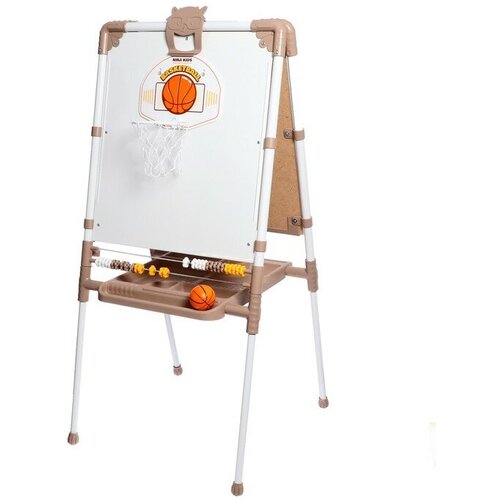 Преимущества: Две рабочие поверхности: меловая для рисования мелом; магнитная для рисования маркерами на водной основе и размещения магнитных фигурок и алфавита; Регулировка высоты: от 73,5 до 107,5 см; Вместительный органайзер для канцтоваров; Пластиковый желобок для мелков; Съемное баскетбольное кольцо на присосках и мяч в комплекте; Пластиковые колпачки на опорах против скольжения и повреждения напольного покрытия; Устойчивая конструкция, надежная фиксация; Компактное хранение в сложенном виде.Предназначен для детского развития и творчества.Возраст детей: от 3 лет;Размер рабочей поверхности: 53 x 46 см;Размер в разложенном виде: 54 x 51,6 x 107,5 см;Размер в сложенном виде: 75,5 x 51,6 x 107,5 см;Регулировка высоты мольберта: от 73,5 до 107,5 см;Материал: металл, пластик;Цвет каркаса: белый;Вес: 5 кг.