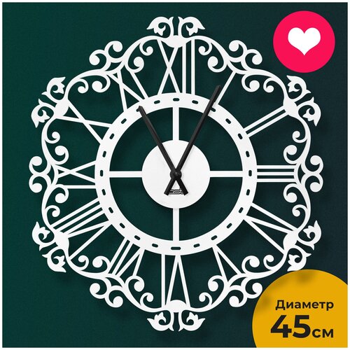 Часы настенные интерьерные большие Bordo белые деревянные бесшумные, 45 см