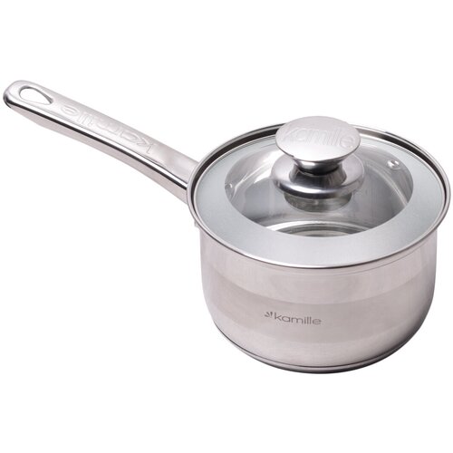 Ковш 2,1 л. из нержавеющей стали со стеклянной крышкой Kamille KM 4526S d16х10,5 см)