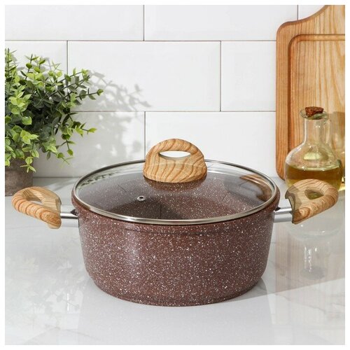Кастрюля Доляна Брауни, 3,3 л, стеклянная крышка, антипригарное покрытие, индукция, цвет коричневый