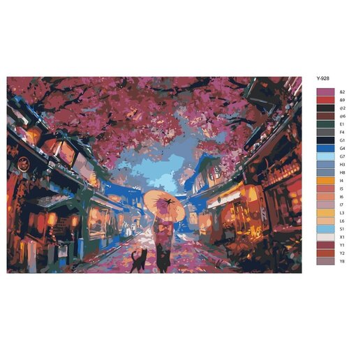Картина по номерам Y928 Девушка с котом и Японские улицы 40х60