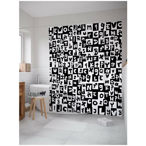 Штора водоотталкивающая для ванной, занавеска в ванную комнату тканевая JoyArty Графический алфавит, 180х200 см