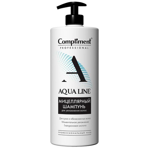 Compliment Professional Aqua Line Мицеллярный шампунь для увлажнения волос 1000 мл с ухаживающим, увлажняющим комплексом создан специально для обладательниц сухих, обезвоженных волос. Благодаря входящим в состав мицеллам шампунь деликатно и тщательно очищает кожу головы и волосы от себума, грязи, остатков уходовой косметики и стайлинговых средств, при этом увлажняет и нормализует гидробаланс. Гиалуроновая кислота обеспечивает увлажнение волос по всей длине, улучшает процесс выработки кератина, благодаря этому волосы приобретают естественный блеск. Алое Вера помогает избавиться от ломкости, восстанавливает структуру волосяного стержня, обеспечивает глубокое увлажнение. Растительный кератин облегчает расчесывание, устраняет излишнюю пушистость, делает локоны блестящими, гладкими, увлажннными и более здоровыми. Состав: Aqua, Sodium Laureth Sulfate, Cocamidopropyl Betaine, CocoGlucoside, Cocamide DEA, Glycerin, Sodium Lauroyl Sarcosinate, Sodium Cocoamphoacetate, Betaine, StyreneAcrylates Copolymer, CocoGlucoside, Aloe Barbadensis Aloe Vera) Leaf Extract, Hydrolyzed Corn Protein, Hydrolyzed Wheat Protein, Hydrolyzed Soy Protein, Panthenol, Propylene Glycol, Polyquaternium7, Silicone Quaternium18, Trideceth6, Trideceth12, PEG7 Glyceryl Cocoate, Hydroxypropyl Guar Hydroxypropyltrimonium Chloride, PEG150 Pentaerythrityl Tetrastearate, PEG6 CaprylicCapric Glycerides, Sodium Hyaluronate, 1,2Нexanediol, Caprylyl Glycol, Phenoxyethanol, Parfum, Disodium EDTA, Citric Acid, CI 61585.