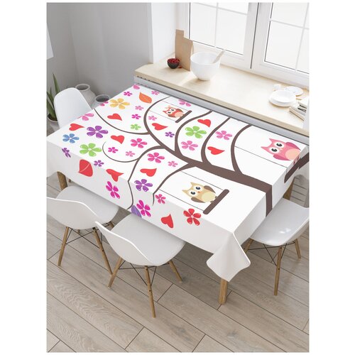 Скатерть прямоугольная JoyArty Совы на дереве любви из сатена, 120x145 см