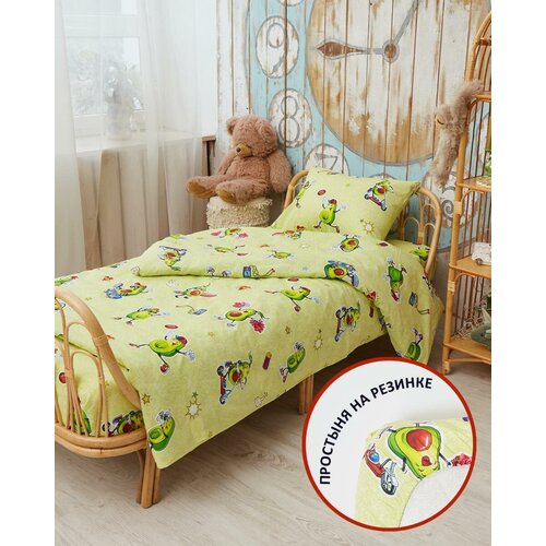 Детский комплект постельного белья с простынй на резинке выполнен из 100 хлопковой ткани бязь, довольно плотной 120 гркв. м), прочной, износоустойчивой и очень красивой. Мягкость и блеск ее часто сравнивают с шелком. Пододеяльник и наволочки оснащены удобной длинной застежкой на молнии тонкая, потайная, расположена с короткой стороны), что значительно упрощает вкладывание туда одеяла и подушек. Простыня на резинке расположение резинки по всему периметру, а не только по углам) идеально подходит для матраса высотой от 18 до 23 см. Постельное бель изготовлено из цельной, широкой ткани без шва посередине простыни, пододеяльника или наволочек, что увеличивает уровень комфорта таких изделий по сравнению с моделями, сшитыми из более узкой ткани. При правильном уходе стирка не более 40 градусов), прослужит долго, сохранив форму и цвет. В действительности рисунок такой же яркий как на картинке фото товара реальное, а не 3D графика). Продукция упакована в красивую подарочную упаковку можно использовать для хранения). Швы аккуратные и ровные, так как пошив осуществляется на промышленном швейном оборудовании. Изготовитель торговая марка Вс себе это свежий Российский бренд, работающий под девизом зеленый мир каждому. Вся продукция производится в России, строго из 100 хлопка, имеет сертификацию качества Гост 313072005, а также зарегистрирована в государственной системе маркировки и прослеживания Честный знак.