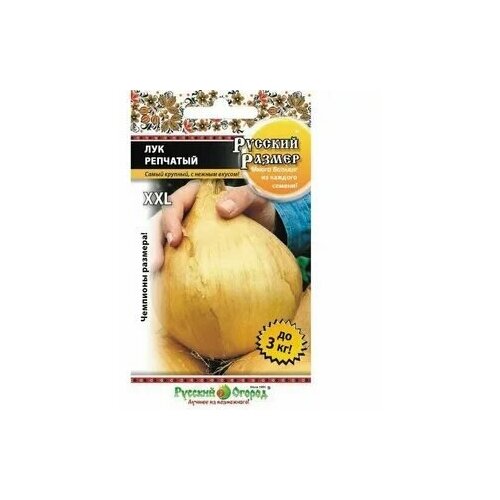 Лук Русский Размер репчатый самый крупный из репчатых луков! Вырастает до массы в 3 кг! Благодаря деликатесному, нежному, сладкоострому вкусу и отсутствию резкого лукового запаха, превосходен в салатах. Для получения отборных крупных луковиц советуем выращивать лук через рассаду. При посеве семенами в грунт формирует стандартную луковицу за один сезон! Отличный вариант для богатого урожая на всю семью!Лук Русский Размер репчатый высаживают на рассаду в апреле, за 4045 дней до посадки в открытый грунт. Предварительно можно замочить их на 1218 часов в стимуляторе роста. Глубина заделки 1 см, температура 43;2043;25С. Чтобы не пикировать сеянцы, можете сразу посадить семена на расстояние 57 см. При этом, как только появятся всходы, их следует переставить в солнечное, но более прохладное место, где температура будет 43;1643;20С. Место для высадки желательно выбрать в высокой части сада, где снег сходит первый и, соответственно, участок быстрее прогревается. Почва необходима рыхлая, с осени е нужно удобрить, чтобы репка выросла крупной. Лучшие предшественники репчатого лука бобовые, огурцы, картофель.Лук Русский Размер высаживают на расстоянии 57 см, хорошо поливают и обязательно рыхлят почву после каждого полива. Со временем сделайте прореживание, чтобы расстояние между луковицами увеличилось до 810 см. Оставьте более мощные и крупные растения. С июля удаляйте на луке все новые стрелки, чтобы растение пускало все силы в репку. Старые перья постепенно будут вянуть. После двух недель с полного увядания перьев урожай уже будет готов!