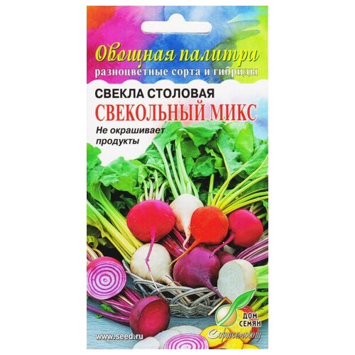 Свекольная смесь из корнеплодов желтого, белого, бело красного и красного цветов. Оригинальные сорта, которые могут украсить огородный ландшафт разноцветными листьями, а обеденный стол разноцветными блюдами. Корнеплоды желтого, белого, розового цветов не буреют при варке, готовятся быстрее, чем обычная свекла, обладают более нежным вкусом, полезны и вкусны в свежем виде. Также не окрашивают другие продукты, поэтому область применения в кулинарии у разноцветной свеклы шире, чем у обычной красной. Свекла это прекрасный диетический продукт.Посев: производится в плодородную, предварительно произвесткованную, хорошо прогретую почву на глубину 23 см, на хорошо освещенном участке. Возможно выращивание через рассаду. В открытый грунт высаживают после 15 мая. Растения размещают по схеме 10х30 см.Уход: рекомендуется рыхление почвенной корки 23 раза за сезон) , своевременная прополка, поливы по необходимости, подкормки минеральными удобрениями.Сбор урожая: масовую уборку проводят в конце августа сентябре до наступления заморозков.