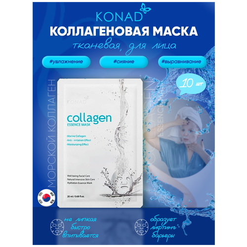 Konad Collagen Essence Mask Маска для лица тканевая увлажняющая успокаивающая с морским коллагеном, Корея 10 шт.