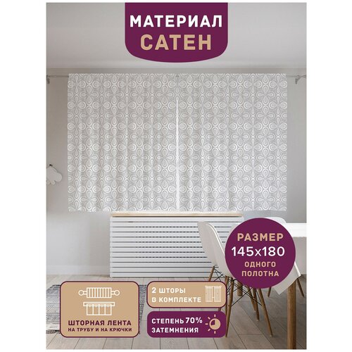 Шторы, фотошторы короткие JoyArty Светлая вышивка из ткани сатен, 2 полотна 145x180 см, шторная лента и крючки
