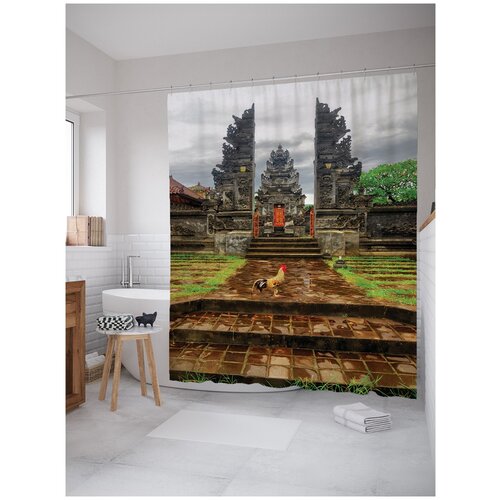 Штора занавеска) для ванной JoyArty Дорога к императору из сатена, 180х200 см с крючками