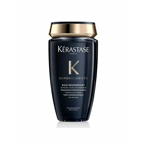 Kerastase Chronologiste Regenerant ревитализирующий и тонизирующий шампуньванна для борьбы с основными признаками старения кожи головы и волос: сухая, чувствительная, ослабленная кожа головы и тусклые, ломкие и истонченные волосы. Содержит гиалуроновую кислоту, молекулу Абиссин и Витамин Е, которые борются с основными признаками старения. Обеспечивает длительное увлажнение кожи головы, укрепляет волосы, насыщая их влагой, возвращает упругость и придает роскошный блеск.Средство обладает узнаваемым тонким ароматом Chronologiste с нотами чайный розы, древесины светлых пород и мускуса. Дарит ощущение комфорта. На 44 более увлажненные волосы и кожа головы через 48 часов после применения. Интенсивно очищает волосы и удаляет с них частицы загрязнений. Делает волосы более сильными. Восстанавливает естественное сияние волос. 250 мл