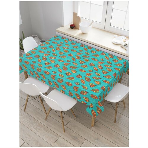 Скатерть прямоугольная JoyArty на кухонный стол Разноцветные полосы на листьях из оксфорда, 120x145 см