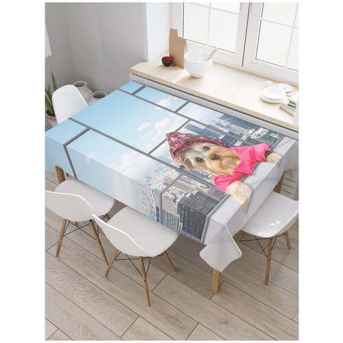 Скатерть прямоугольная JoyArty Песик в опасности из сатена, 120x145 см