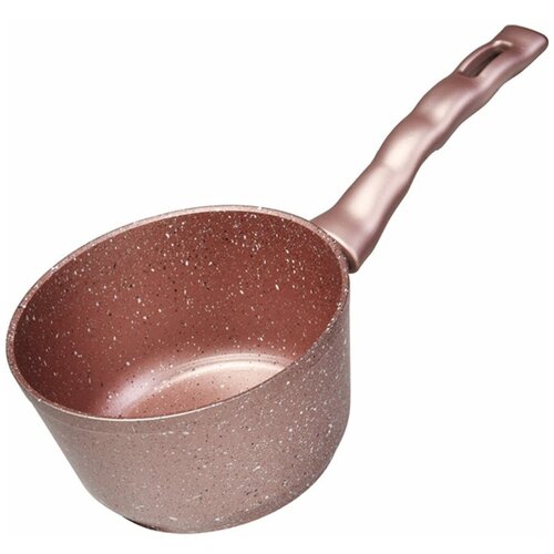 Ковш серии Rose Gold изготовлен из качественного алюминия с антипригарным 3х слойным покрытием Gizem Frit. Антипригарное покрытие как с внутренней, так и с внешней стороны обеспечивает лгкий уход, пища не пригорает, и ковшик легко моется. Ручка выполнена из термостойкого бакелита с мягким покрытием Soft touch, она очень приятная и мягкая на ощупь. Такая ручка не выскользнет даже из мокрых рук. Посуда серии Rose Gold подходит для всех типов плит, кроме индукционных. е можно мыть в посудомоечной машине.