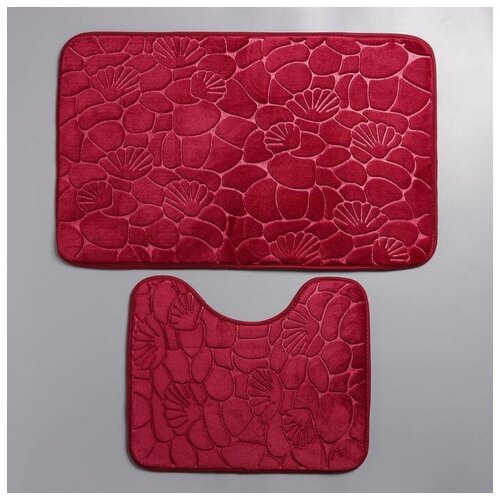 Набор ковриков для ванной и туалета Доляна Галька, ракушки, 2 шт: 4050, 5080 см, цвет бордовый