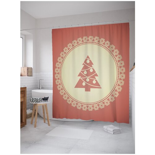 Штора занавеска) для ванной JoyArty Домашняя елка из сатена, 180х200 см с крючками