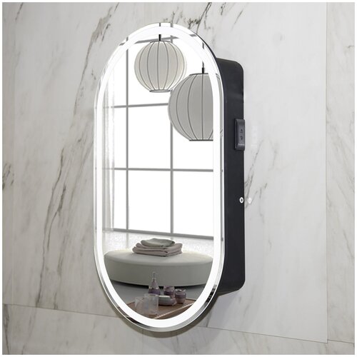 Зеркалошкаф с LED подсветкой для ванной комнаты. Оснащен выключателем с датчиком движениярасстояние от датчика движения до ближайшего препятствия должно быть более 10 см.). Датчик и розетка размещены с противоположной стороны от петель. Универсальный правостороннее и левостороннее исполнение. В шкафчике одна стеклянная полка, толщиной 5 мм. Свет белый холодный). Закрытый корпус зеркалашкафа защищает электрическое оборудование от попадания на него пыли и брызг. Это делает возможным располагать в непосредственной близости от раковины и ванны.Зеркалошкаф поставляется из двух частей: корпус шкафа и дверцазеркало. При сборке, дверь легко устанавливается и защелкивается в петли. Цвет зеркалашкафа: черный. Корпус выполнен из МДФ, покрытие ПВХ пленка SOFT Touch бархатистое матовое покрытие, приятное на ощупь, не дает бликов, износостойкое, не выгорает на солнце и не теряет цвет. Крепеж для навески прилагается. В качестве элемента подсветки используется светодиодная лента с плотностью диодов 120 шт.м мощностью 9,6Втм, что обеспечивает яркое свечение по периметру зеркала. Срок службы диодов 10000 часов. Класс пылевлагозащищенности IP 44, что подразумевает, зеркало можно использовать внутри влажных помещений типа санузла или ванной, оно защищено от попадания случайных брызг и капель воды и от проникновения твердых предметов. Основные характеристики зеркалашкафа: Габариты зеркалашкафа шир. 450 мм. х выс. 800 мм. Толщина зеркалашкафа 150 мм Габариты корпуса шкафчика 600 мм. х 360 мм. Глубина внутри корпуса шкафчика 90 мм. Фурнитура с доводчиком для плавного закрывания двери. Розетка до 2 кВт Стеклянная полка 1 шт. Для тех, кому необходимо подключение к розетке, зеркалошкаф дополнительно укомплектовано шнуром с вилкой и выключателем, и соединительными клеммами. Зеркальное полотно производства AGC Тип влагостойкое зеркало Толщина зеркального полотна 4 мм Крепеж стационарный Свет белый холодный 6500К) Класс пылевлагозащищенности IP 44 Климатическое исполнение УХЛ2 Класс электробезопасности 1 Соответствуют требованиям нормативных докв ГОСТ Р МЭК 6059812003 ГОСТ Р МЭК 5982197, ГОСТ Р51318.1599, ГОСТ Р 5151499, ГОСТ Р 51317.3.22006, ГОСТ З 51317.32008. Корпус зеркала выполнен из МДФ, ПВХ пленка SOFT Touch матовая).
