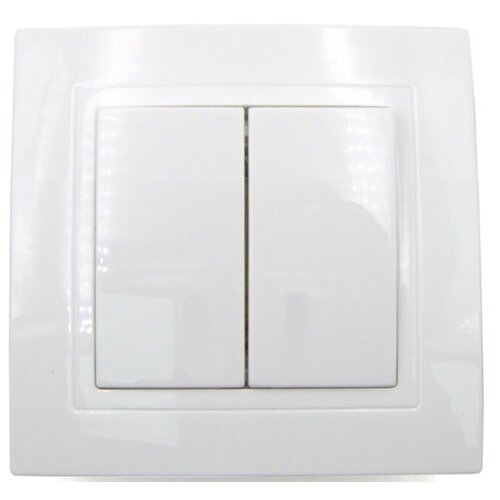 Выключатель двухклавишный скрытой установки предназначен для управления двумя линиями освещения. Корпус и основание электроустановочного механизма изделия выполнены из термостойких, не поддерживающих горение материалов. Устройство оснащено латунной токопроводящей контактной группой, винтовыми зажимами для присоединения проводников и винтовой регулировкой распорных лапок. Характеристики: Номинальное напряжение: 220 В. Номинальная сила тока: 10 А. Степень защиты: IP20. Материал: пластик. Цвет: белый.
