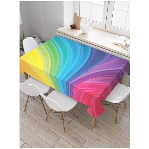 Скатерть прямоугольная JoyArty Радужные волны из сатена, 180x145 см