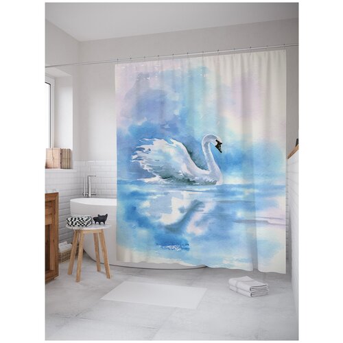 Штора занавеска) для ванной JoyArty Лебединая красота из сатена, 180х200 см с крючками