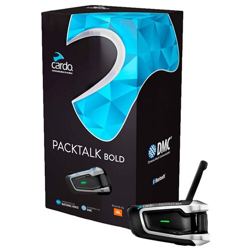 CARDO Мотогарнитура PACKTALK BOLD JBL SINGLEГарнитура доступна в комплекте из одной PACKTALK BOLD) и двух гарнитур PACKTALK BOLD DUO) в коробке.Мотогарнитура Cardo Scala Rider PackTalk Bold JBLГарнитура PACKTALK BOLD новая флагманская модель с технологией DMC, которая позволяет общаться 15 пользователям на расстоянии до 8 км. DMC Dynamic Meshwork Communication), или Динамическая Сетевая Связь новый стандарт интеркомсвязи, разработанный компанией Cardo Systems специально для гарнитур PACKTALK. В отличие от Bluetooth, DMC автоматически создает подключение к участнику интеркома с наиболее сильным и устойчивым сигналом. В то время как классические системы с Bluetoothинтеркомом работают по схеме соединения в цепочку, каждое из устройств DMC подключается ко всем доступным собеседникам по схеме звезда, что исключает провалы и сводит к минимуму помехи в связи при отключении или подключении нового участника. Помимо быстрой работы и простого подключения, по сравнению с традиционной Bluetoothтехнологией, DMC обеспечивает отличное качество звука.Впервые показанные в ноябре на Миланском мотосалоне, PACTALK BOLD задали новые стандарты в легкости использования и бесшовной интеграции с системами голосового управления Apples Siri и OK Google.Теперь водителю достаточно произнести Hey Cardo и система мгновенно готова выслушать команду. Больше не требуется какихлибо дополнительных действий, наподобие pushtotalk. Вместо этого система позволяет мотоциклисту сконцентрироваться на управлении мотоциклом и не отпускать руки с руля, в отличие от других существующих систем связи, зачастую требующих весьма утомительных и неэффективных команд для активации управления. Таким образом Cardo с новыми моделями бросает вызов казавшемуся простым и логичным кнопочному управлению, предлагая взамен управление голосом.Прочный пыленепроницаемый и влагонепроницаемый корпус соответствует международному стандарту IP67, согласно которому устройство может работать на глубине до 1 м в течение получаса.Таким образом, гарнитура подходит для тяжелых погодных условий.Bluetooth 4.1.Режимы интеркома: конференцсвязь; поочередное переключение между 9 участниками цепочки; ClicktoLink.Дальность соединения в прямой видимости): до 1,6 км между участниками; до 8 км при наличии 4 и более участников.Новая эргономика и элементы управления многофункциональное роликовое колесо и кнопки, протестированные в зимних перчатках. 2 cменных микрофона: проводной и гибридный. Превосходное качество звука благодаря 40мм динамиками с высокой разрешающей способностью. Цифровая обработка звука. Время непрерывной работы 13 часов в режиме разговорамузыки и 7 дней в режиме ожидания. Продвинутая технология распознавания голоса в режиме громкой связи. Голосовые подсказки на нескольких язы