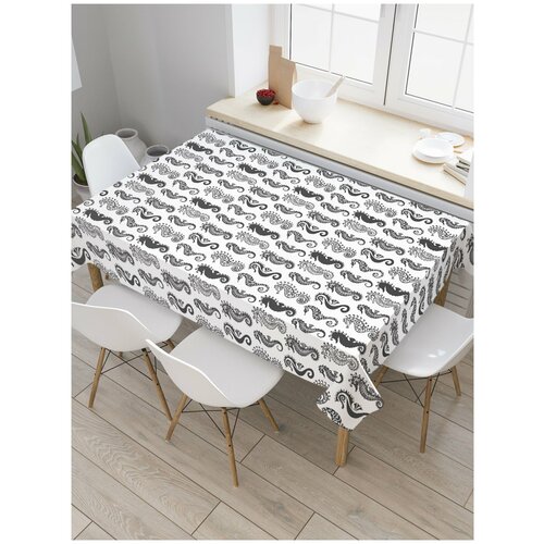 Скатерть прямоугольная JoyArty на кухонный стол Орнаментальные морские коньки из оксфорда, 120x145 см