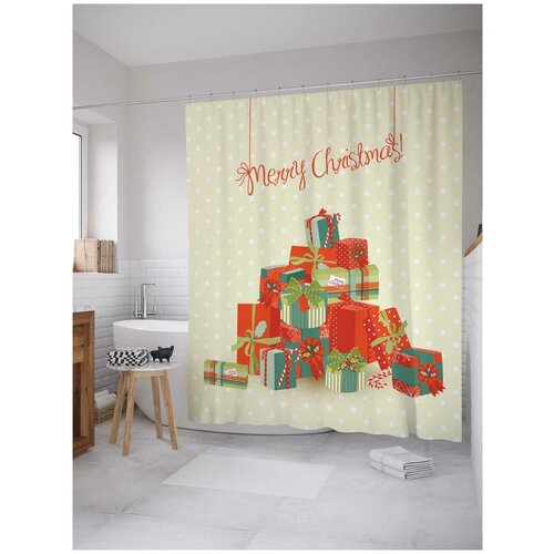 Штора для ванной JoyArty Гора с подарками занавеска в ванную комнату из сатена, 180х200 см с крючками