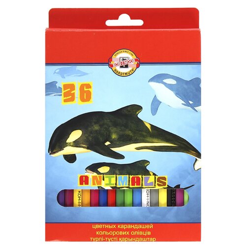 Карандаши 36 цветов KohINoor 3555, Животные, европодвес