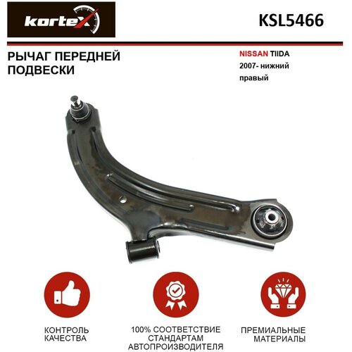Рычаг Kortex для передней подвески Nissan Tiida 2007 пер. подв. нижн. прав. OEM 54500EL000; 54500EL00D; KSL5466