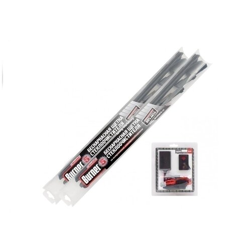Щетки Burner 5 с системой подогрева с питанием от автомобильной сети обладают надежной и практичной конструкцией. В каждом комплекте идут усиленные провода и 9 универсальных креплений, обеспечивающих совместимость практически с любым автомобилем известных российских и зарубежных марок. При износе чистящего полотна резинок) нет необходимости менять щетки, можно просто купить новый комплект резинок взамен изношенных. Устройство Радиобрелок подсоединяется к аккумуляторной батарее и срабатывает на включение после нажатия кнопки на автономном пульте. Диапазон рабочих температур: от 60 до 43;70 Время нагрева до рабочей температуры: 2 минуты. В комплект входит: Комплект щеток с подогревом BURNER 5 2 шт. Комплект для подключения через Радиобрелок 1шт. Комплект усиленных проводов для подключения 1 шт.