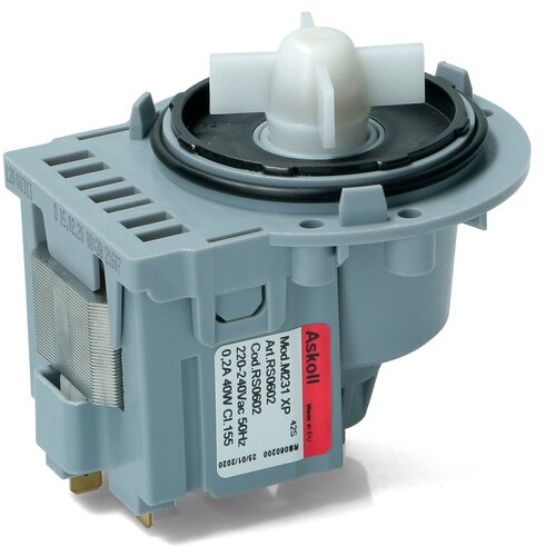 Водяной автоматический насос Askoll используется для фильтрации отработанной воды и дальнейшего удаления ее из системы стиральной машины через сливной шланг. Данный насос также применяется в популярных брендах стиральных машин, таких как Samsung, Whirlpool, Ariston, Indesit, Electrolux, Zanussi, Candy и является универсальным. Мощность помпы составляет 40 Ватт. Список некоторых моделей стиральных машин, в которых может быть заменен данный насос: Samsung: DC3100030A, DC3130008D, DC9715696A, DC3130001A, DC3100057A, WF6450S6V; Whirlpool AWE 7515, AWE 7726, AWE 8725, AWG 116, AWG 118, AWG 222, AWG 223, AWG 232, AWG 233, AWG 234; LG E1092ND5, E1289ND, E1289ND5, E8069LD, E8069SD, F1012NDR, F1020ND, F1020ND1, F1020NDP5; Electrolux 1460573205, EW1000W, EW1011K, EW1023T, EW1024T, EW1026T, EW1042S; Candy: Alise 842K, 844, Aquamatic 6T, 91941771, 8T, 10T, 600; Bosch: W430X0GB01, WAA20160GB01, WAA24160GB01, WAA28160GB01, WAA28165GB11, WAE24162UK01, WAE24363GB02 и другие.