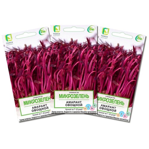 Артикул: 1909617. Вес: 3 гр., Размер упаковки: 8 x 0.2 x 15 см., Температурное ограничение: Нет, Агрономический срок годности, лет: 3. Микрозелень Амарант овощной является очень полезным продуктом, обладая горьковатоореховым вкусом, послужит отличным дополнением любого блюда, придаст нежный вкус мясу, рыбе, закускам, овощам, смузи и витаминизированным коктейлям. В проростках содержатся белки, аминокислоты, витамины В, Е, С, D, полиненасыщенные жирные кислоты, минеральные компоненты. Ежедневное употребление ростков амаранта даже в небольших количествах способствует оздоровлению и омоложению организма.Микрозелень это молодые побеги овощей и зелени, достигшие 57 см роста и раскрывшие первые листочки. В период прорастания активизируются все полезные свойства растения. Молодые растения содержат максимальное количество витаминов, микроэлементов, минеральных солей, белков, ферментов и антиоксидантов. Это делает микрозелень намного полезнее, чем взрослые растения. Микрозелень это самая экологически чистая и безопасная для здоровья пища!Для выращивания микрозелени подойдет любая низкая широкая мкость. Ее заполняют на 23 субстратом можно использовать любой грунт для рассады или комнатных растений, а также песок, бумажные или хб салфетки), увлажняют и слегка уплотняют. Семена раскладывают по поверхности подготовленного субстрата, слегка присыпают и еще раз уплотняют. Увлажнение проводят из опрыскивателя. Затем мкость накрывают стеклом или пленкой и не снимают е до появления всходов. Семена прорастают на свету при комнатной температуре. В фазе первой пары настоящих листочков микрозелень срезают ножницами. Для круглогодичного потребления рекомендуется проводить посевы каждые 10 дней.