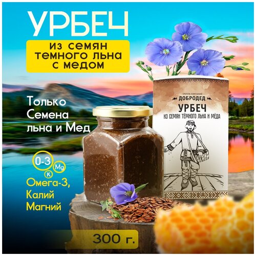 Урбеч из семян темного льна с медом без сахара в подарочной коробочке с магнитом, 300 гр.