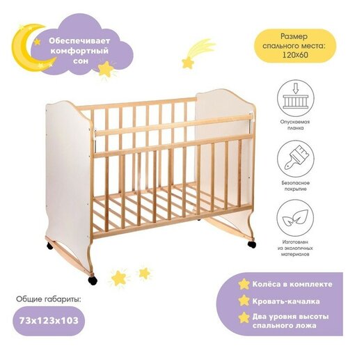 Кроваткакачалка ВДК Морозко с фигурной спинкой отличается оригинальным дизайном. Модель предназначена для ребенка с момента его рождения.Простой механизм укачивания позволяет быстро убаюкать младенца. Прямые торцы дуг и умеренная амплитуда колебания не позволяют конструкции опрокинуться.Когда необходимость укачивания отпадет, кроватку необходимо установить на колесную базу. Для подросшего ребенка можно демонтировать переднее ограждение, в результате чего получится замечательный диванчик.Особенности:натуральная древесина реечного каркасаокрашивание нетоксичными безопасными для ребенка лаками2 положения установки ложа2 варианта использования: как качалку на полозьях и классическое применение на колесной базеполозья для качалки с прямым упором на концах для предотвращения опрокидывания конструкциибоковые спинки фигурные с обтекаемыми линиямиреечное дно и ограждение гарантируют свободную циркуляцию воздуха в спальном местефронтальная зона с опускаемой планкойстандартные размеры ложа позволяют без труда подобрать детские постельные принадлежностиматериал: массив березы, ЛДСП gt;