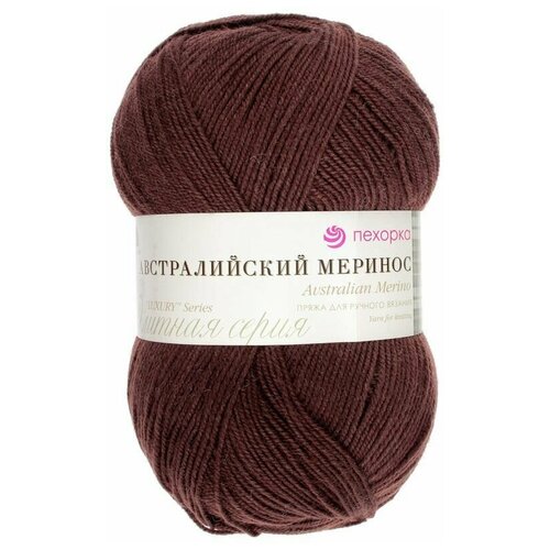 Пряжа Австралийский меринос 95 шерсть,5 акрил объмный 400м100гр 251Коричневый), 1шт