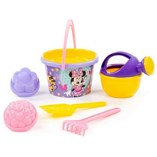 Набор Песочный Disney Минни 8: ведро среднее с наклейкой, ситечко, лопатка, грабельки, 2 формочки,