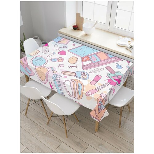 Скатерть прямоугольная JoyArty Косметичка модницы из сатена, 180x145 см