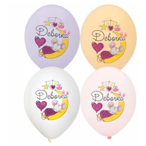 Шар латексный 14 С рождением девочки, пастель, набор 25 шт.