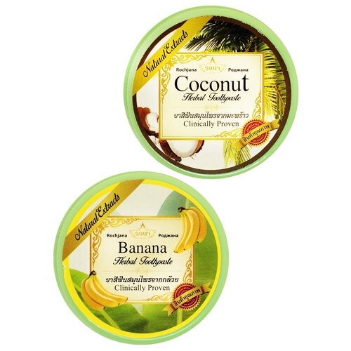 Набор зубных паст: с маслом кокоса Rochjana 30гр. с экстрактом банана Rochjana, 30гр.