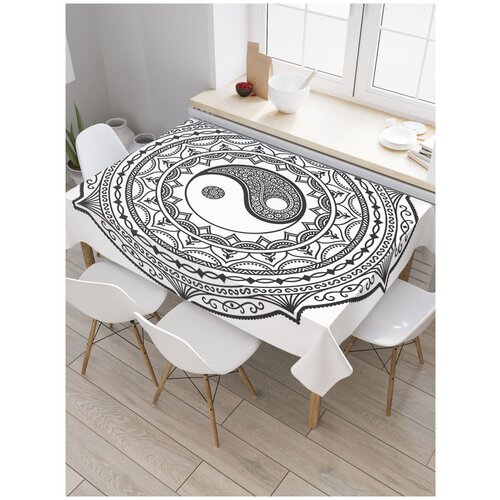 Скатерть прямоугольная JoyArty Инь и ян с узорами из сатена, 120x145 см