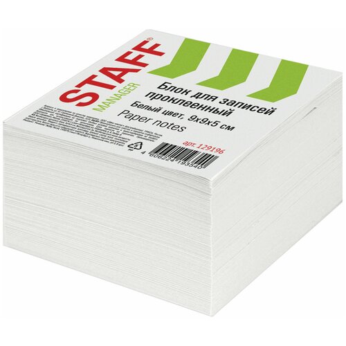 Блок для записей STAFF проклеенный, куб 995 см, белый, белизна 9092, 129196