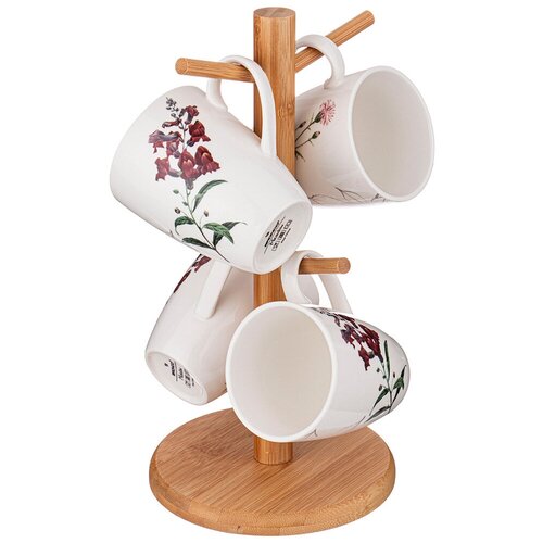 Набор из 4 кружек BRONCO 34;MEADOW34; на деревянной подставке 380 МЛ ТМ BRONCO модная коллекция 34;MEADOW34; с ботаническим рисунком. Новый имидж посуды на каждый день! Ручная работа. Упрочненный фарфор. Посуда прошла сертификацию. Безопасна для контакта с пищевыми продуктами. Современные формы и удобные размеры. Отлично сочетается с натуральными зеленым, мятным и кремовым цветами. Неповторимая сервировка. Можно пользовать в микроволновой печи, ставить в холодильник и мыть в посудомоечной машине.Деревянная Подставка НЕ предназначена для использования в микроволновой печи и мытья в посудомоечной машине !