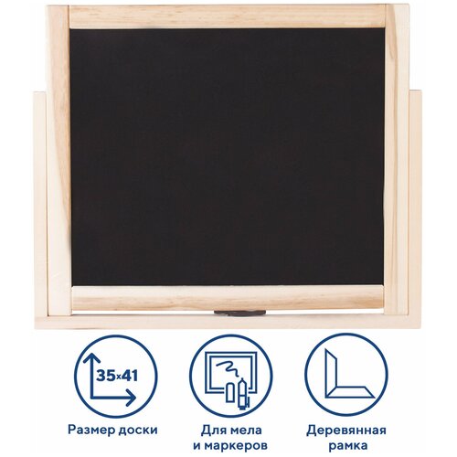 Доска двустороняя для мела и маркеров 3541 см), настольная, подставка, черная белая, пифагор, 236888
