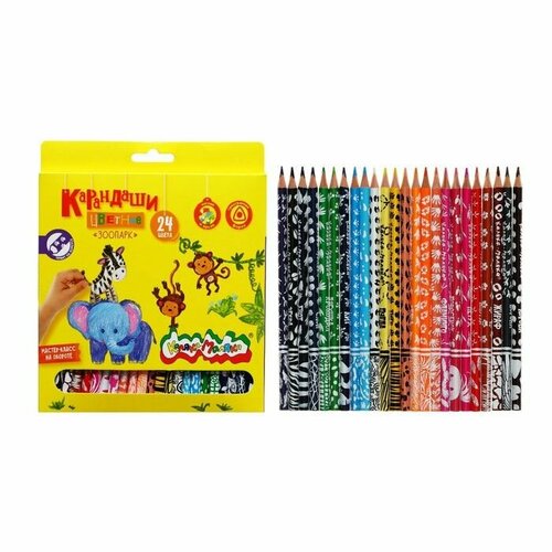 Карандаши 24 цвета 34;Зоопарк34; КалякаМаляка, трехгранные, с принтом на корпусе, деревоКарандаши КалякаМаляка Зоопарк это карандаши с индивидуальным принтом на корпусе. На каждом карандашике нанесены следы и окрас животного, которое ассоциируется с цветом карандаша. Благодаря таким карандашам, ребенок будет развивать ассоциативное мышление и лучше запоминать цвета. Классическое непревзойденное качество корпуса, грифеля и ультрамягкое письмо позволят влюбиться в эти карандаши с первого штриха.х Диаметр карандаша: 7,2 мм;х Диаметр грифеля: 3 мм;х Длина карандаша: 176 мм;х Форма: трехгранный;х Цветность: 24 цвета;х Мягкость: 4М;х Упаковка: картонная коробка с европодвесом;