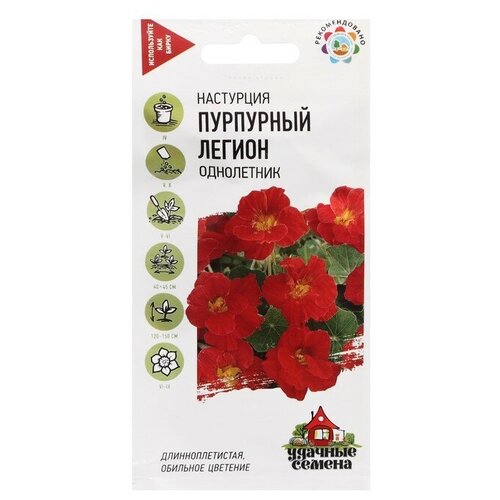 В комплекте 7 шт.Однолетнее травянистое растение семейства Настурциевые с плетистыми побегами длиной до 120150 см. Цветет обильно с июня до заморозков. Цветки пурпурнокрасные, махровые, 56 см в диаметре. Теплолюбива и светолюбива. Предпочитает умеренно плодородные, влажные почвы. Выращивают рассадным способом или прямым посевом в открытый грунт, предварительно намоченными в течение суток семенами, по 34 шт. в лунку. При благотворительных условиях настурция завязывает много семян, которые, осыпаясь, способны перезимовать в почве. Используется для вертикального озеленения, как почвопокровное и как ампельное растение.