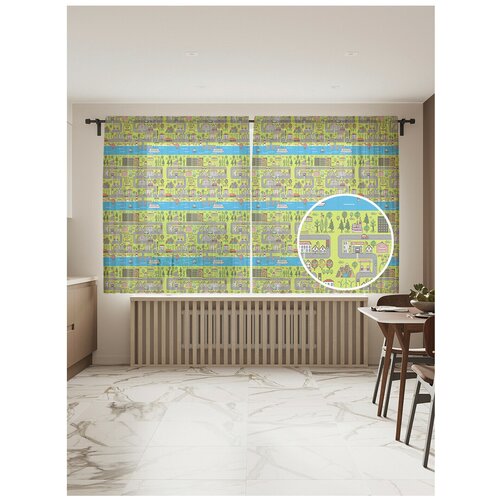Тюль, фототюль короткий JoyArty Дорога к порту высота 180 см, ширина 145 см 2 полотна) на шторной ленте, крючки в комплекте